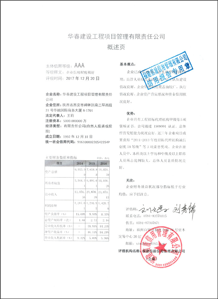 華春建設工程項目管理有限責任公司 XDPJ201712238