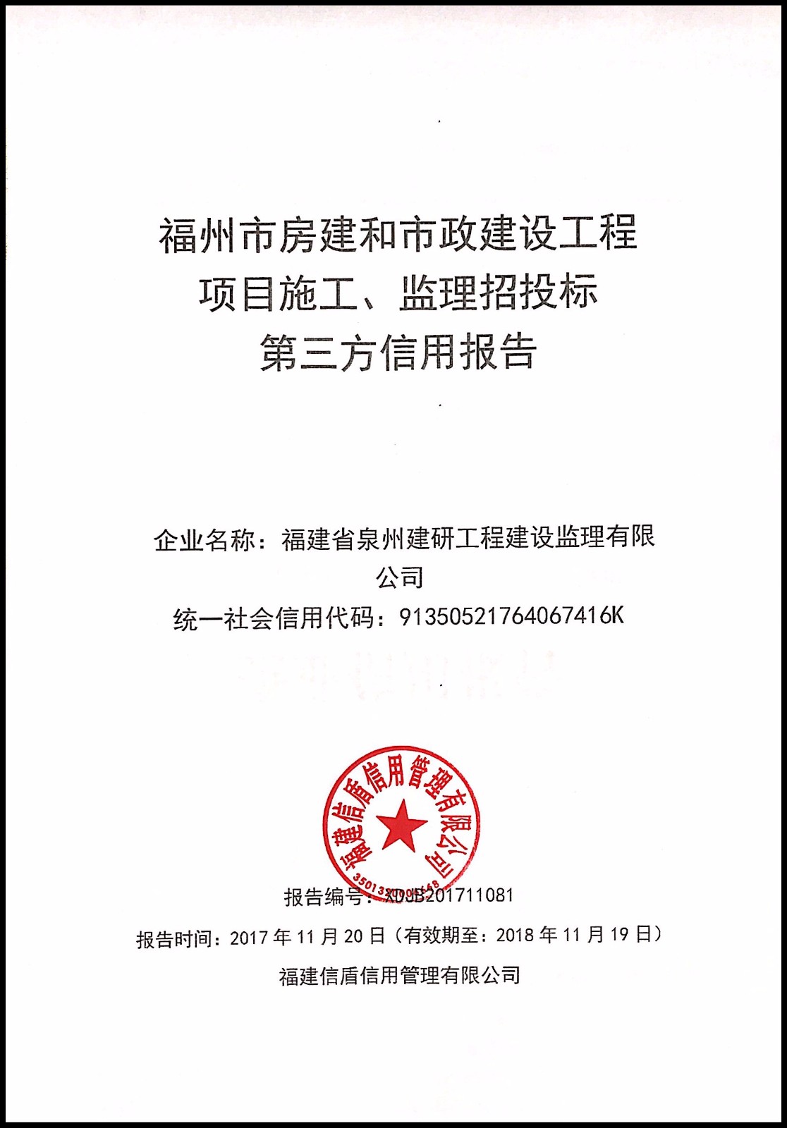 福建省泉州建研工程建設監理有限公司 XDJB201711081