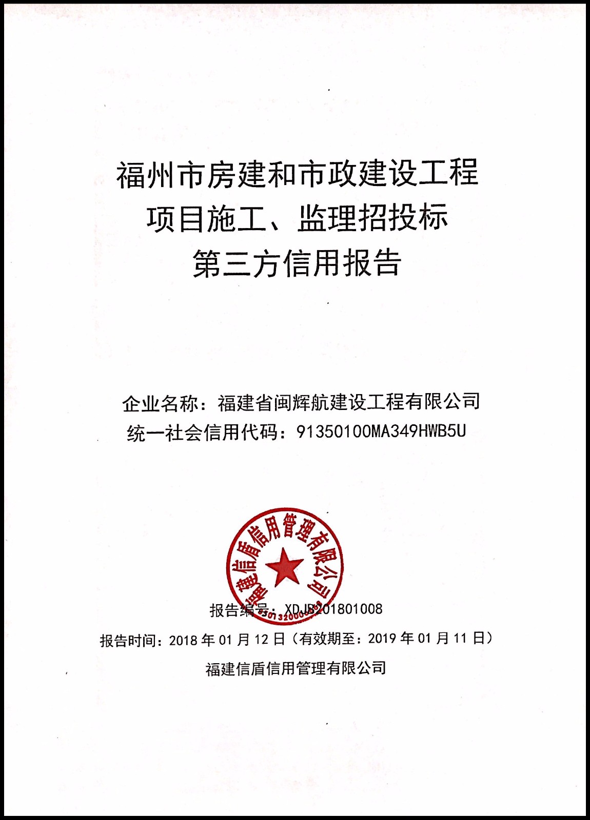 福建省閩輝航建設工程有限公司 XDJB201801008