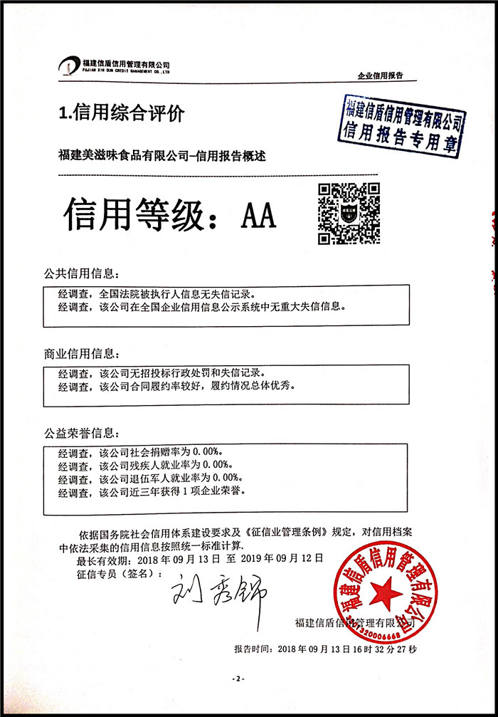 福建美滋味食品有限公司 XDBD201809023