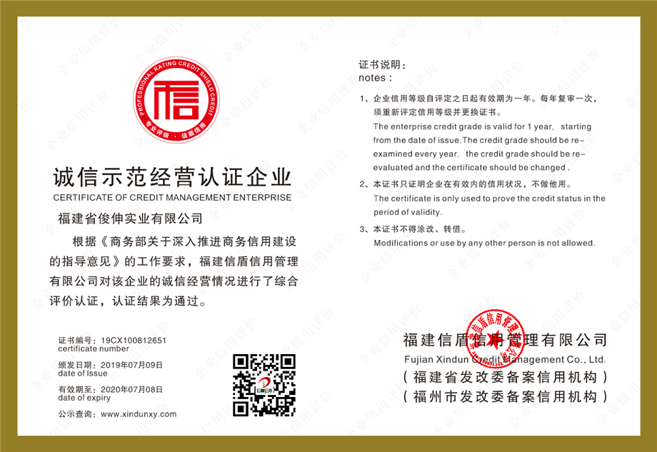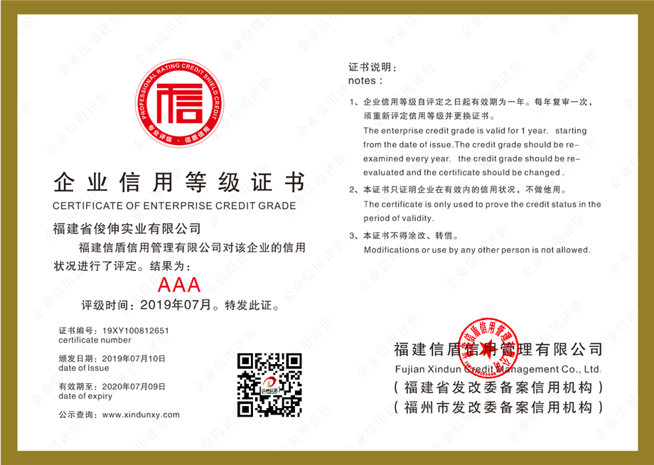 企業信用等級證書